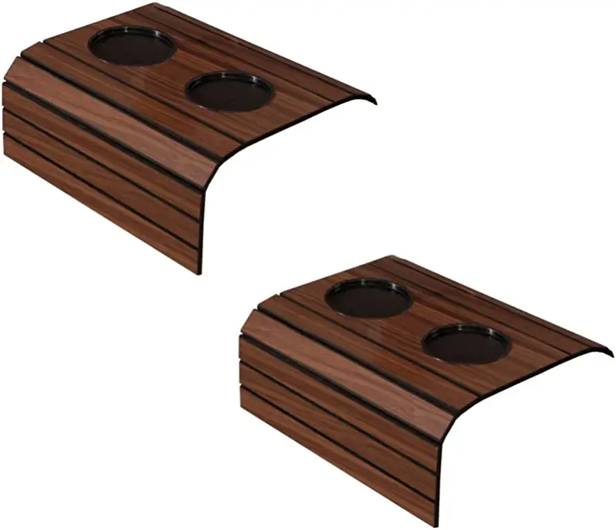 Kit 2 Bandejas Esteira para Braço de Sofá Cor Mel com Porta Copos