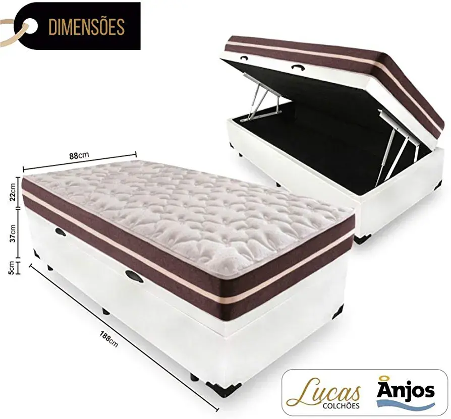 Cama Box Com Baú Solteiro + Colchão De Molas - Anjos - Classic Superlastic 88cm